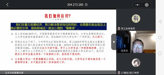 此次云端就业指导活动为期一周,课程设计合理,内容丰富,形式多样,同学们在课堂上频繁与老师互动,认真学习,达到了预期效果。就业指导课的开办,为我院2021届毕业生提早吹响了就业号角,营造了就业氛围,为我院明年就业工作的开展注入强心剂,不失为一场别开生面的就业总动员。