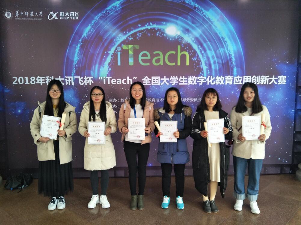 2018年12月2日,科大讯飞杯“iTeach”全国大学生数字化教育应用创新大赛决赛在华中师范大学落下帷幕。我校信息科学与工程学院教育技术学专业学生取得了一等奖5项、二等奖4项的优异成绩,充分展示了我校教育技术学专业学生扎实的专业基本功。我校与华中师范大学、华南师范大学等在内的14所高校被评为本次比赛的“优秀组织单位”。