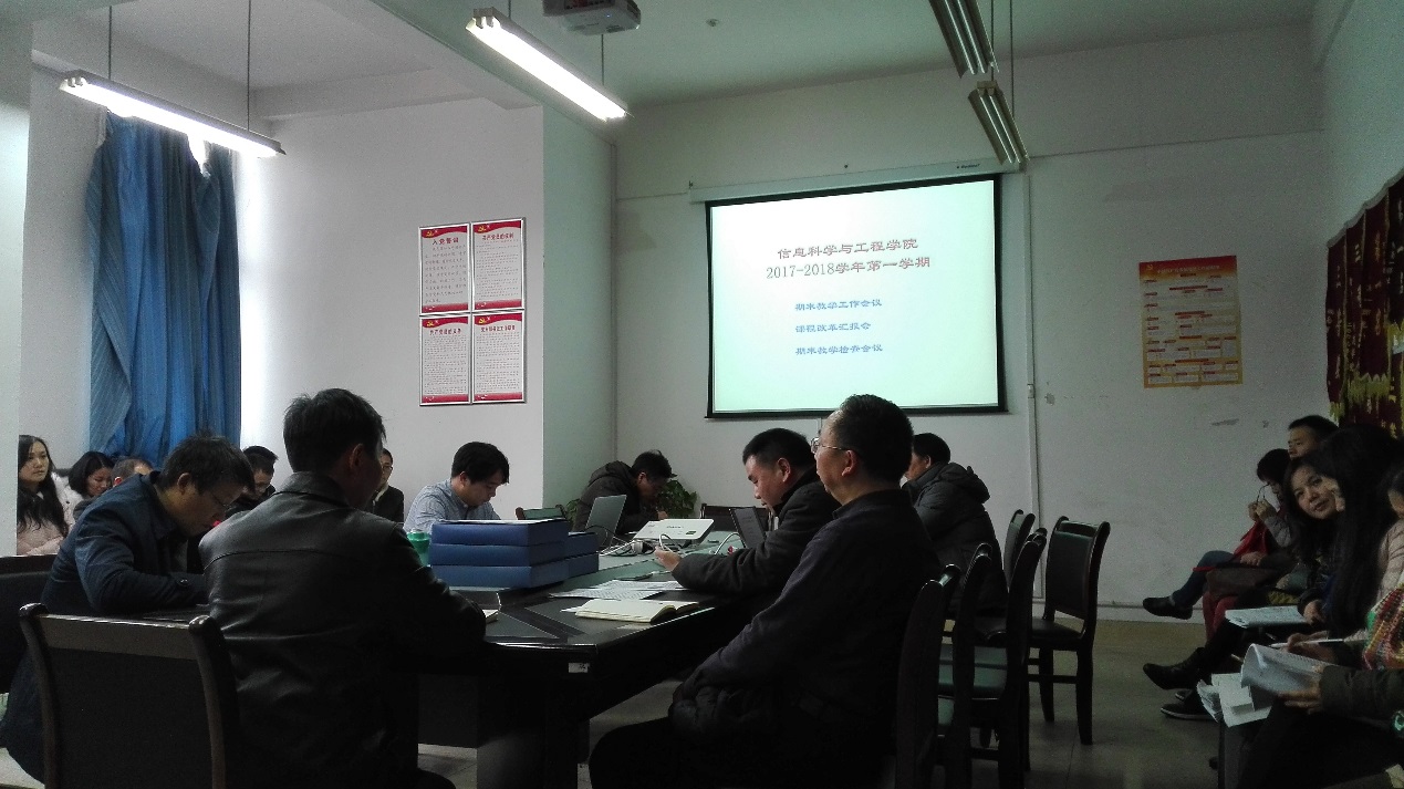 2018年1月2日下午,我院在院会议室召开“信息科学与工程学院 2017-2018学年第一学期期末教学工作会议、课程改革汇报会、期末教学检查会议”。院长李勇帆、书记王杰文、副院长田祖伟、王建军出席会议,全院教职工参加了会议。本次会议由院长李勇帆主持。