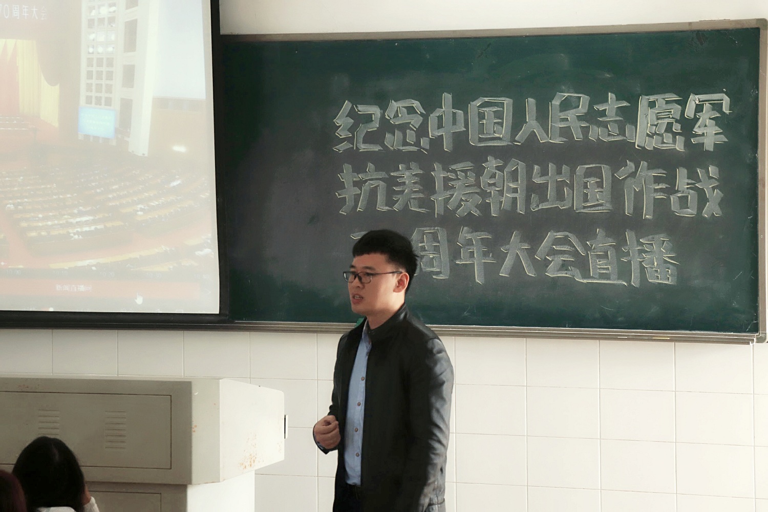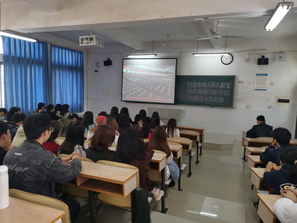 10月23日上午10点,我院组织师生代表收看纪念中国人民志愿军抗美援朝出国作战70周年大会,聆听习近平总书记的重要讲话,缅怀为保家卫国牺牲的革命先烈,弘扬爱国主义与国际正义。