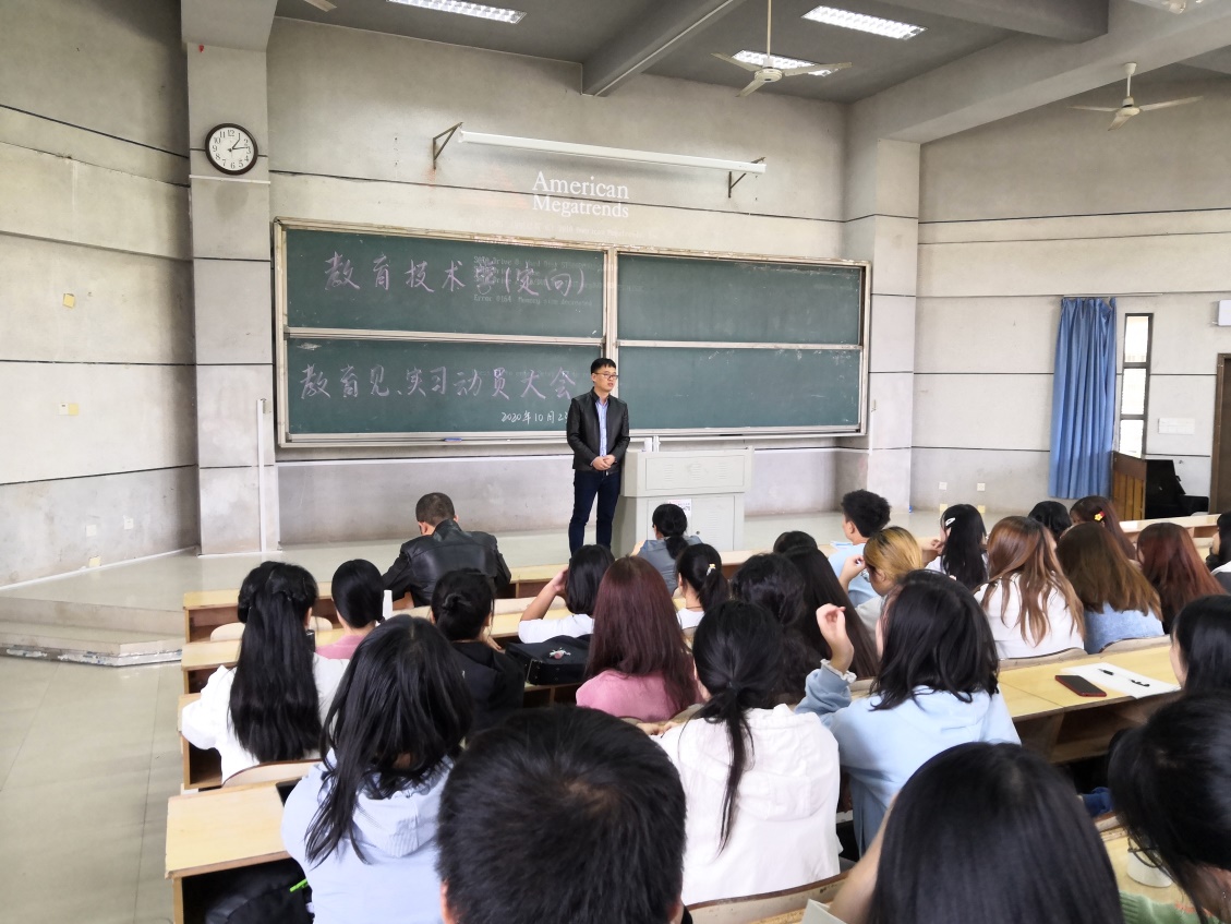 10月23日中午,我院组织2018、2019级六年制教育技术学专业全体学生,在润寰南105召开了2020年教育见习及教育实习动员大会。学院副院长何向阳、党总支副书记成夏炎及带队教师祁玉娟、刘琳出席,小学信息技术教育教研室主任黄悦主持大会。