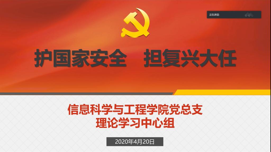 4月20日上午,我院党总支理论学习中心组通过腾讯会议系统线上开展主题为“护国家安全,担复兴大任”的集中学习。会议由学院党总支书记王杰文主持。