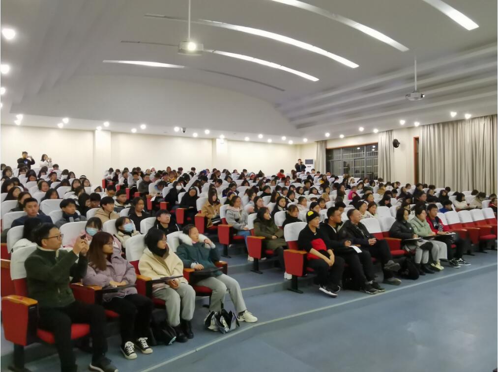11月25日晚,湖南大学硕士研究生导师、教育与心理测评中心主任袁建林博士应邀到我院,做了题为“技术支持的过程性测量理论与实践”的学术讲座。2018-2020级教育技术学专业学生200余人聆听了讲座,学院党总支书记王杰文出席。讲座由学院副院长何向阳主持。
