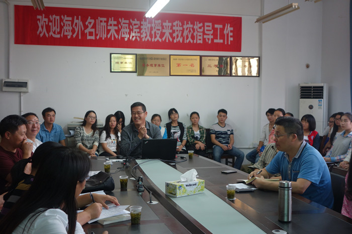 我校“基础教育信息化技术湖南省重点实验室”的科研人员就实验室建设方案的制定、实验室体制机制创新、学术团队的构建、科研成果转化及科研人员的国际交流等问题与朱教授进行了深入交流。朱教授结合加拿大尼皮星大学协作系统实验室的建设实际,对这些问题给出了很好的建议。