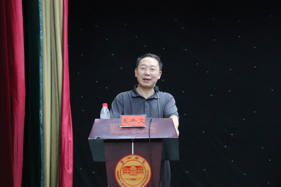 王杰文书记为新生详述了大学的定义,强调大学具有指导学生获得专业知识、提高人际交往能力的重要作用。同时,他提出“名师在点,高生在悟”的概念,指出学生是认知的主体,是知识意义的主动构建者。随后,王杰文教授给出新生宝贵建议,希望他们能够明确自己的学习目标,继续自己艰苦而充实的求学之路,争做新时代的奋进者、开拓者。