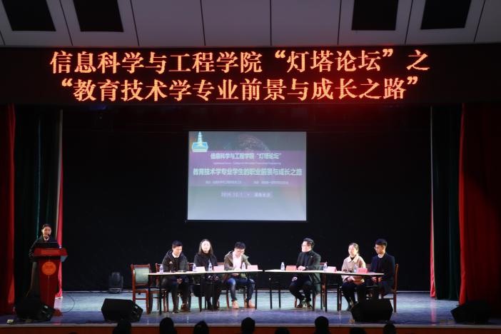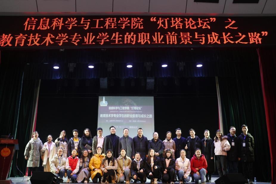同日下午2点30至5点30,我院于特立楼实验剧场举行分享报告会。校友会廖跃华老师、学院党总支书记王杰文教授、副院长田祖伟教授、党总支副书记成夏炎老师、学工办主任关红儒老师出席此次分享报告会。校友嘉宾文豪、于飞克、唐蓉琪、易青山、唐琬晴、曹向荣、学院17—19级教育技术学专业学生共计378人参加会议。会中,分享环节种六位校友分别作有关教育技术学的职业前景及自身经历的分享。文豪校友“用最初的心,走最远的路”;于飞克校友“唯有见识让你登高,唯有坚持才能抵达”;唐婉晴校友“一线教师的心路历程与方向”;唐蓉琪校友“教育技术专业在面临专业转型时应该如何应对”;曹向荣校友“关于教育技术学专业毕业生的定位”易青山校友“提高职业竞争力”为我们带来一场饱含激情与满满的干货的分享会。