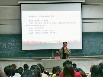 曾玉华指出,全体学员要严格遵守发展党员工作的基本程序,重点把握“五性”。随后给各位学员讲解了大学生入党的基本条件和日常管理。