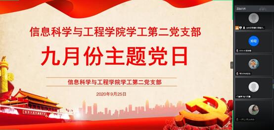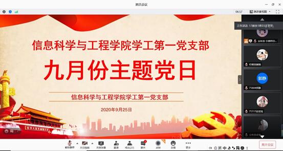2020年9月25日,我院学工第一党支部、第二党支部分别开展了九月份线上主题党日活动。一同参加主题党日活动的有学院党总支副书记成夏炎、学工办全体辅导员以及两个支部的学生党员。王芊芊、全智分别主持各自所在支部的活动。