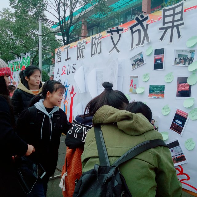 活动后期,我院青年志愿者协会对留言板进行整理,并将活动展板放置于学校实验楼门口,方便更多学生能及时看到防艾内容,加深防艾认识。