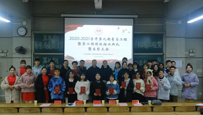 12月9日晚8点45分,我院于怀中南109举行了第七期团校暨第九期“青年马克思主义者培养工程”骨干培训班结业典礼。学校团委书记罗祥云,学院党总支书记王杰文、副书记成夏炎,学工办主任关红儒,团总支书记唐瑞鸿以及126名学员参加此次结业典礼。本次典礼由张旭主持。