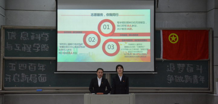 大会在激昂的中国共产主义青年团团歌声中正式拉开帷幕。学院团总支书记唐瑞鸿老师首先作《共青团信息科学与工程学院总支部委员会2018-2019学年工作报告》。唐瑞鸿紧紧围绕学校中心工作,从基层团组织建设、校内外实践活动、学风建设工程、基层团组织建设方面出发做了全面总结,并在报告中指出:一年来,我院广大青年团员在学院党总支和上级团组织的正确领导下,以青年理想信念教育为先导,以提高青年学生的综合素质为主体,全面履行共青团的四项基本职能,服务青年学生成长成才,在加强团的自身建设,拓展团的特色工作,增进团的创新活力等方面取得了可喜的成绩。