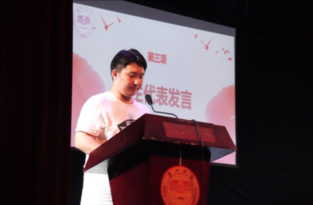 随后,新生代表19级817教技班徐仪婷、19通信1班王家齐、老生代表17通信2班刘妍相继上台发言。徐仪婷和王家齐两位同学分别表达了对大学生活的憧憬,并结合自身情况对今后的学习和生活进行了规划。刘妍同学根据自己两年的大学生活,向新生提出了“规划、耕耘、充实”三词,鼓励学生敢于追梦、勤于圆梦。