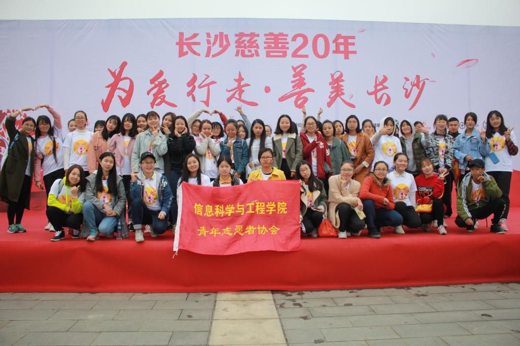 (通讯员 许孔为)2017年11月12日,信息科学与工程学院青年志愿者协会组织80名院内学生参加“长沙慈善20年——为爱行走•善美长沙”公益徒步活动。活动当天早上7时,学院的参赛者们携带背包等物资在学校拱门集合,由青志协人员带队赶往活动起点——洋湖湿地公园。