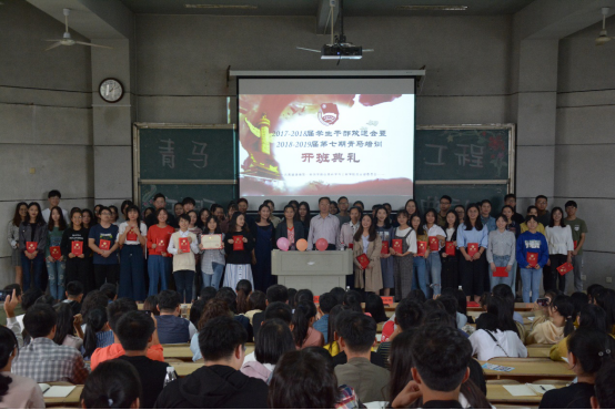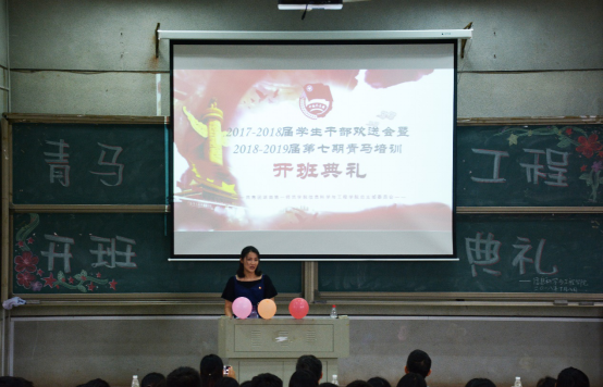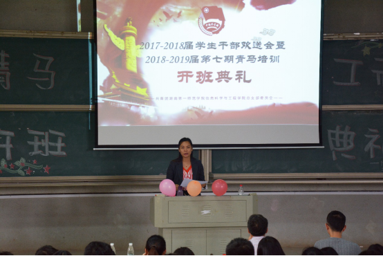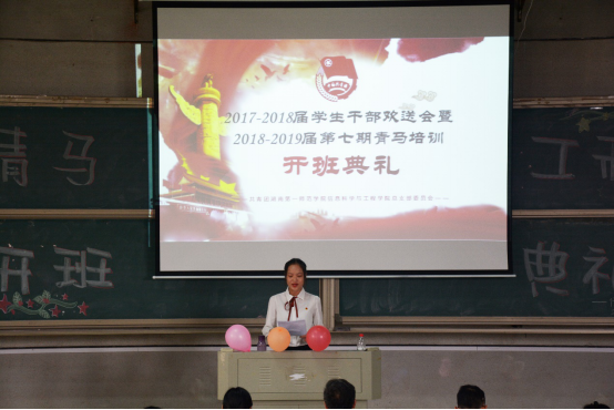 (通讯员 丁姣 邓力超 陈思迁)2018年10月8日12点30分,信息科学与工程学院2017-2018届学生干部欢送会暨第七期青马培训开班典礼在润寰南105隆重举行。学院党总支书记王杰文,党总支副书记易利,学工办关红儒、唐瑞鸿、叶晶出席典礼,2017-2018届学生干部、2018-2019届学生干部及实习干事共计230余人参加典礼,典礼由唐瑞鸿主持。