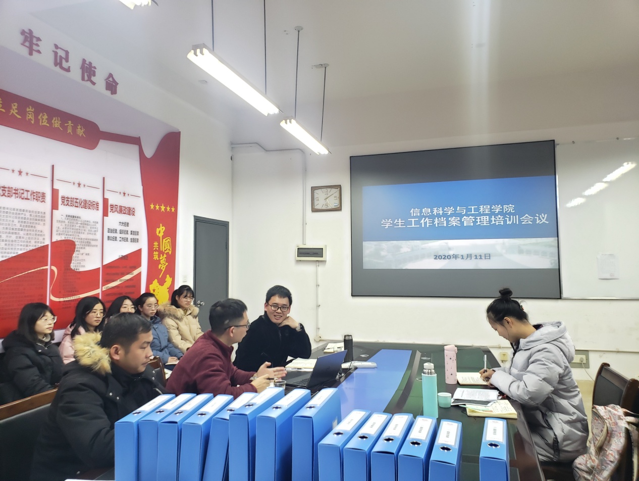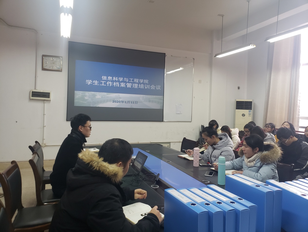 (通讯员 关红儒)1月11日15时,我院在学院会议室召开学生工作档案管理培训会。学院党总支副书记成夏炎授课,学工办辅导员老师以及主要学生干部、干事参加培训,会议由叶晶主持。