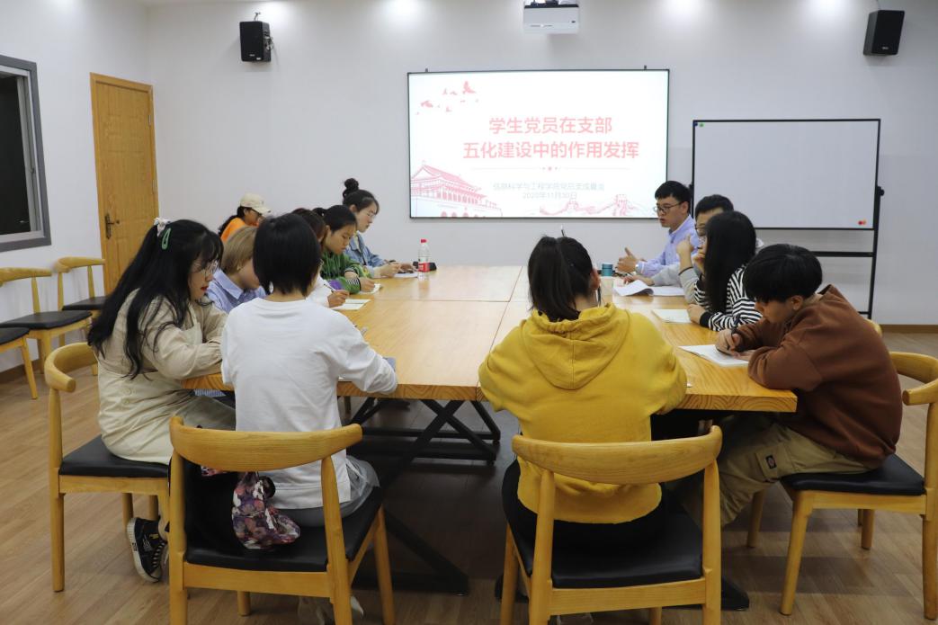 2020年12月1日,我院党总支副书记成夏炎、学工第一党支部书记关红儒在图书馆研修室为学生党员讲授“学生党员在支部五化建设中的作用发挥”和“大学生党员的责任与担当”的主题党课。