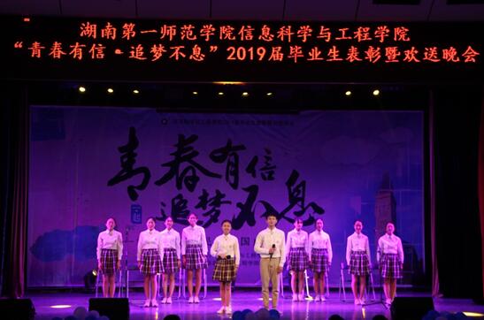 离歌未央,再续华章。本次晚会在欢声笑语中落下帷幕,今夜不说再见,离别不是终点。满载着学识与对未来的期待,又一批信工学子即将迈出一师大门,走向另一片广阔的新天地。在此愿2019届毕业生们永葆青春梦想,在以后的漫漫人生路中,一路披荆斩棘,到达理想彼岸!
