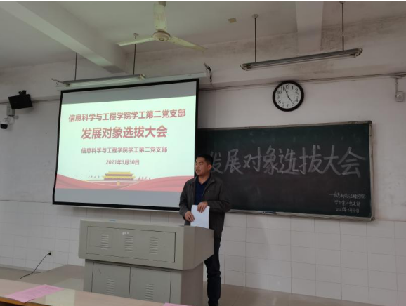 2021年3月30日,我院学工第一、第二党支部在玉衡北209、210召开发展对象选拔大会。学工第一党支部书记关红儒、学工第二党支部书记李荣敬,全体学生党员和69名入党积极分子参与此次大会。大会分别由戴玉洁、刘妍主持。