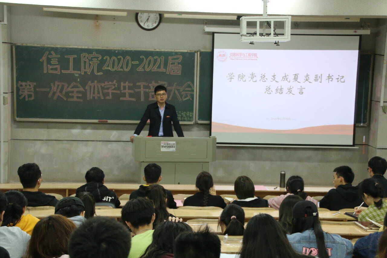 10月28日晚,我院在润寰南101召开2020-2021届学生干部第一次全体会议,学院党总支副书记成夏炎、学工办主任关红儒出席,会议由团总支学生副书记张玉鑫主持。