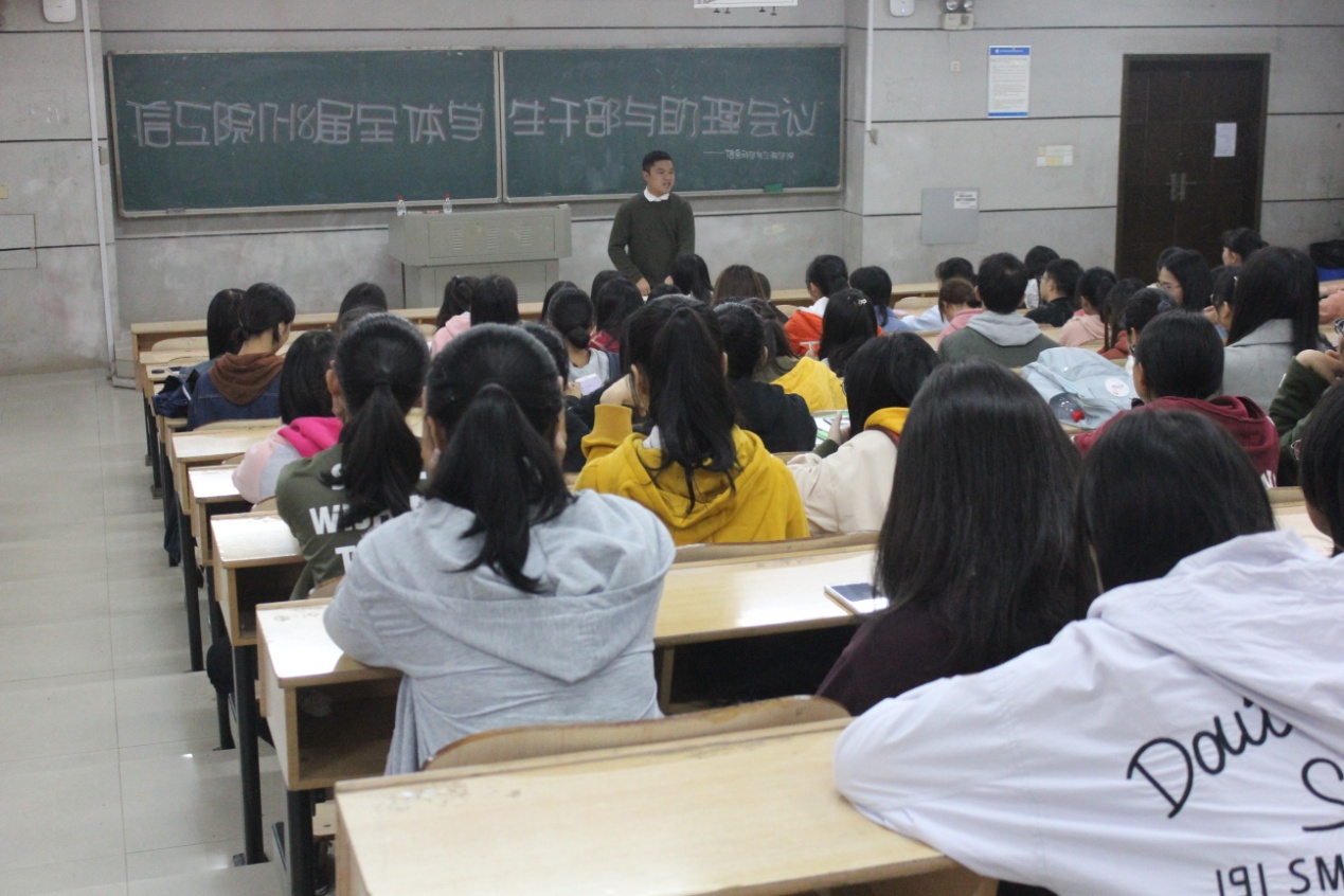 (通讯员 罗德琳)为了让全体学生干部助理尽快融入团学会这个大家庭,10月13日中午12点10 分,信息科学与工程学院在理b101教室召开全体干部与助理会议。2017-2018届全体学生干部及助理共计140余人参与了本次大会,会议由团总支副书记赵越主持。