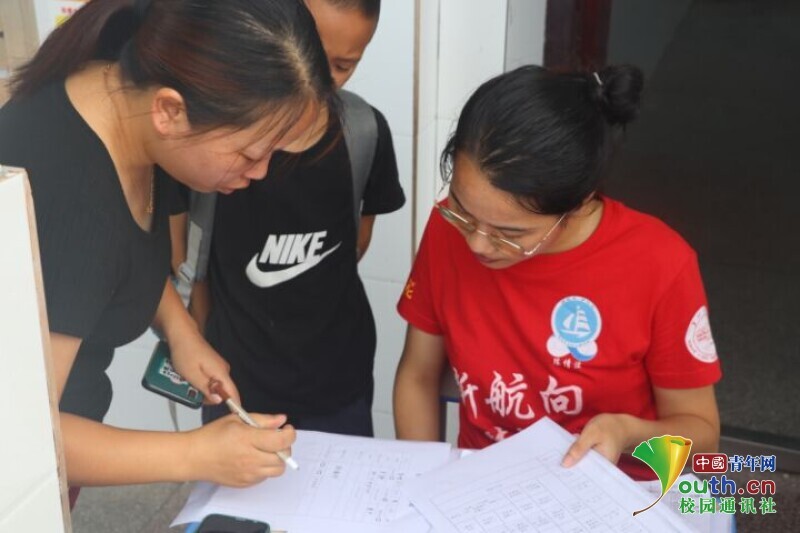 图为队员向学生采集报到信息。中国青年网通讯员 马唯一摄