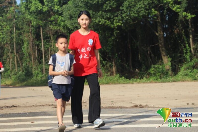 图为放学后队员护送孩子回家。中国青年网通讯员 段新利摄