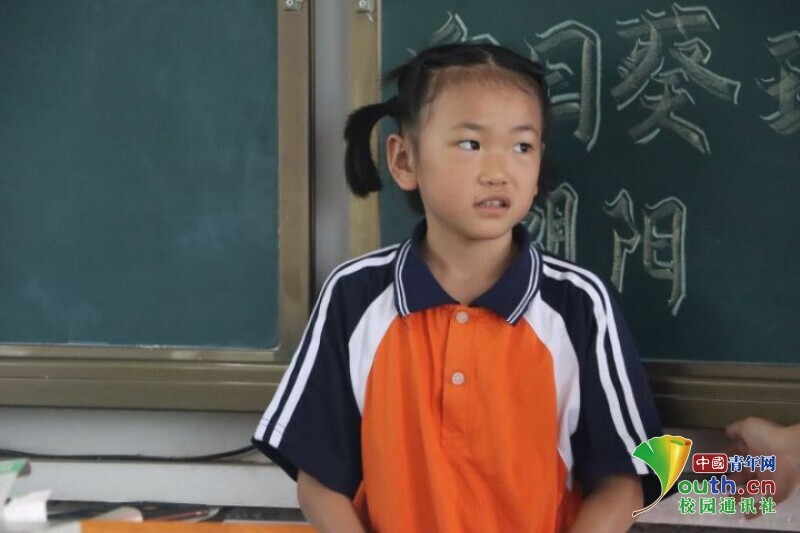 图为开班仪式上孩子在老师的鼓励下上台自我介绍。中国青年网通讯员 段新利 摄