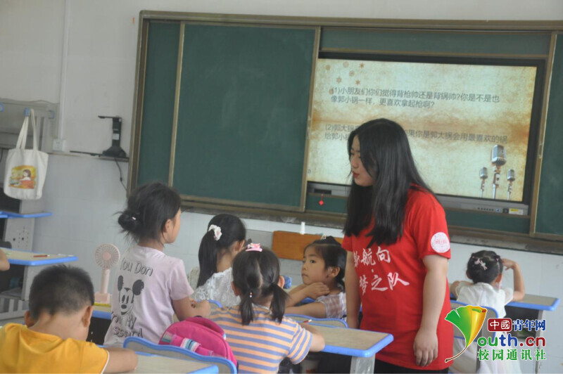 中国青年网益阳7月23日电(通讯员谢卉倩 徐仪婷)2021年7月15日,伟德国际1949信息科学与工程学院新航向·梦之队走进益阳市资阳区迎风桥镇长塘仑小学,与当地政府联合举办“七彩假期”公益暑托班活动。为引导学生树立“感党恩,跟党走”的理想信念,培养学生爱党爱国的情怀。开设了以“学习红色故事,传承红色基因”为主题的故事分享会,在课堂上,学生们表达了对党和国家的热爱和敬佩之情。