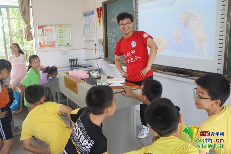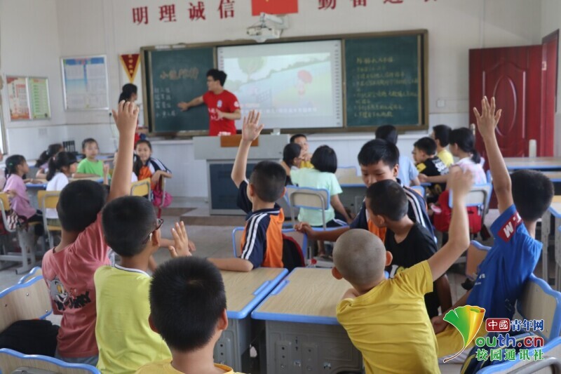 图为新航向·梦之队队员在课堂上给益阳资阳区长塘仑小学学生普及防溺水知识。中国青年网通讯员 段新利 摄