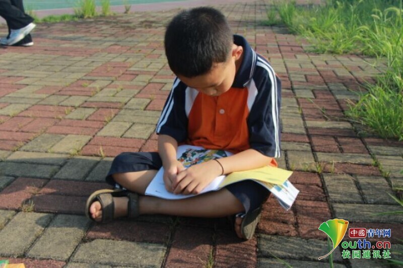 图为在体育课上,不愿参与集体活动,在一旁看书的孩子。中国青年网通讯员 段新利 摄