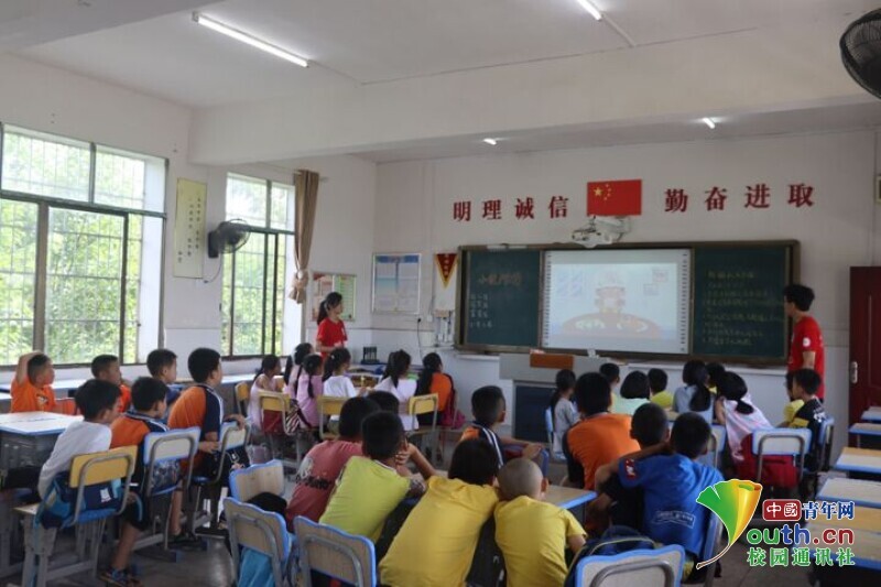 图为课程中孩子们观看防溺水视频。 中国青年网通讯员 欧阳健 摄