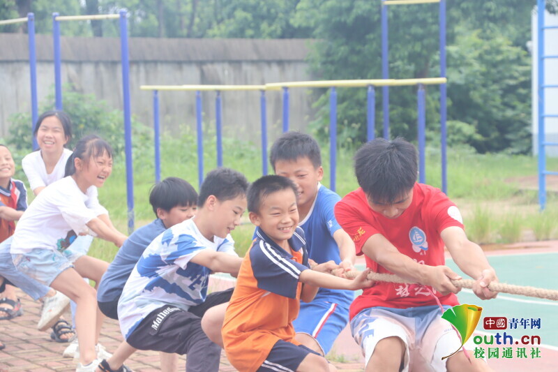中国青年网益阳7月29日电(通讯员 欧阳健 谢卉倩)7月18日,伟德国际1949信息科学与工程学院新航向·梦之队志愿者们带领益阳市资阳区迎风桥镇长塘仑小学“七彩假期”公益暑托班的孩子们开展了趣味运动会。比赛特设爱的抱抱、插旗接力、海底捞月、三人四足、拔河五个项目。在这次运动会中,孩子们积极参与,拿出自己最佳的状态,加油声和欢呼声漫遍全场。
