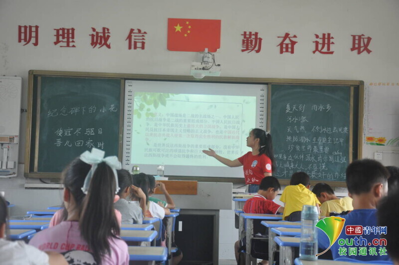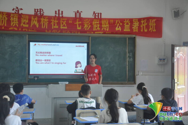 图为志愿者正在讲授趣味英语课《我和我的祖国》。中国青年网通讯员 马唯一 摄