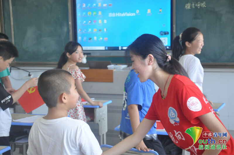中国青年网益阳8月3日电(通讯员 谢卉倩 周泰成)7月19日,伟德国际1949信息科学与工程学院新航向·梦之队走进益阳市资阳区迎风桥镇长塘仑小学,与当地团委联合举办的“七彩假期”公益暑托班已经历九天的多彩生活。语言是人与人之间交流的桥梁,是维持人与人之间情感的纽带,它是日常生活中不可或缺的一部分,凝聚着无数人的智慧。为让贫困山村的留守儿童先从语言上“立起来”,推进当地乡村振兴,特开展普通话推广课程。 同时,以学习红色精神为主题,引导学生树立“感党恩,跟党走”的理想信念,培养学生爱党爱国的情怀。
