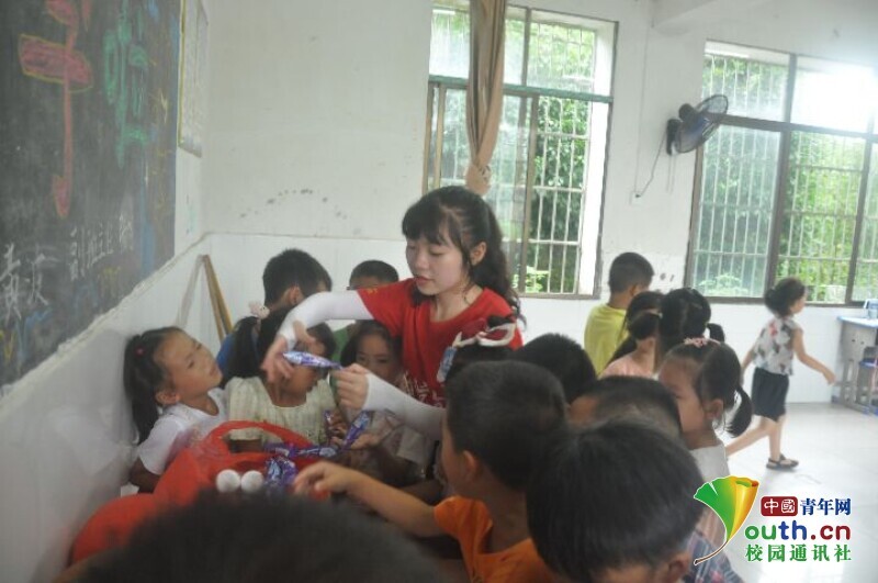 图为趣味运动会结束后,老师分发运动会的奖品。中国青年网通讯员 马唯一摄