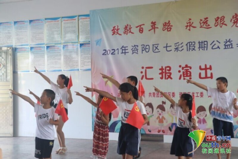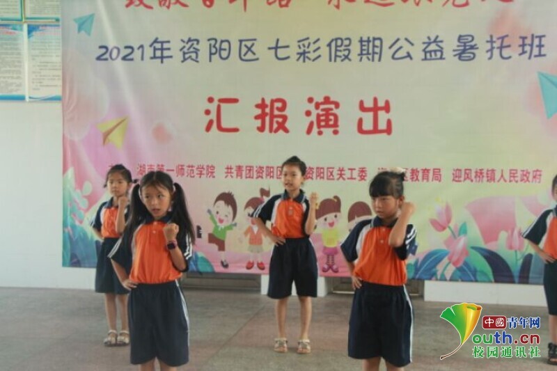 中国青年网益阳8月11日电(通讯员 黄波 张航行)为展示伟德国际1949信息科学与工程学院新航向·梦之队赴迎风桥镇乡村振兴实践团到益阳市资阳区迎风桥镇长塘仑小学暑期“三下乡”社会实践成果,志愿者开展以“致敬百年路,永远跟党走”为主题的艺文汇演活动。7月24日,全体学生以及队员做好充分表演准备,在上午九点准时开展文艺汇演活动。队员们用一场精彩纷呈的文艺汇演为此次长达半个月的支教画上了圆满的句号。