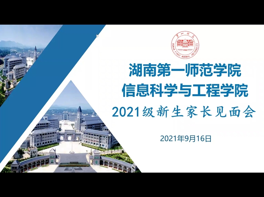 为帮助我院2021级高招新生和家长尽快增进对于学校和学院的了解,促进学校与家庭两方的联系,共同保障学生的成长。9月16日晚7点30分,学院通过腾讯会议平台召开“信息科学与工程学院2021级高招新生及家长云端见面会”。学院党总支书记王杰文,副院长田祖伟、何向阳,党总支副书记成夏炎,全体辅导员及两百余名2021级高招新生与家长参加了此次云端会议。