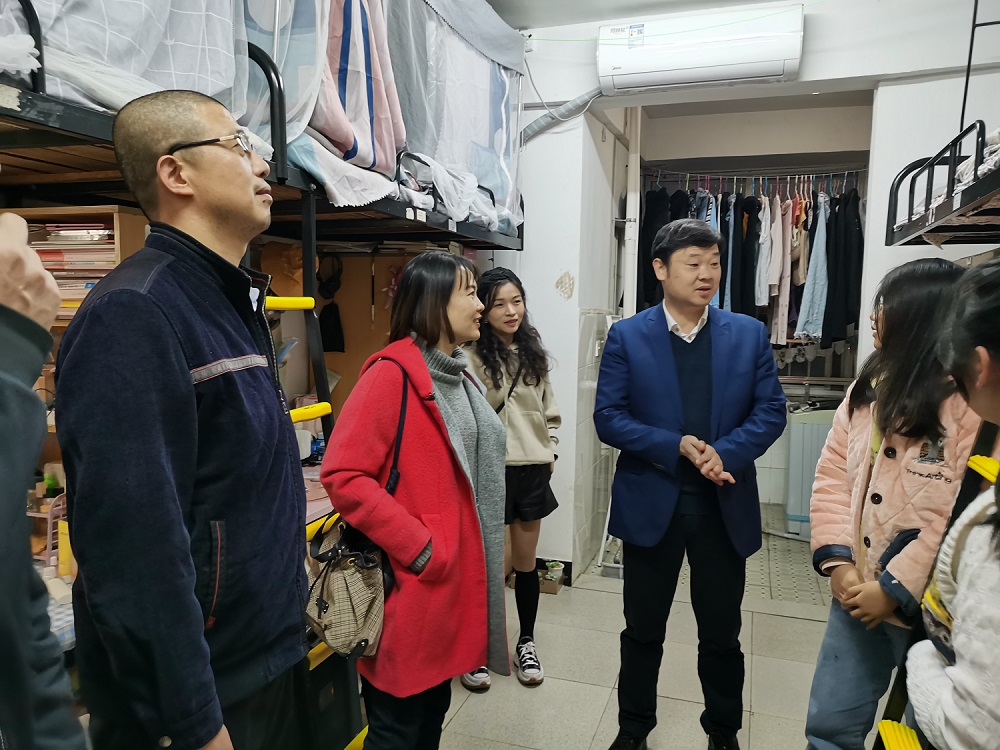 2021年11月14日晚上八时许,伟德betvlctor1949源于英国党委书记刘立勇教授、副院长何向阳教授、陈奕副书记、学工办关红儒、叶晶一行到学生公寓调研,看望学生的生活和学习情况。 领导老师每到一处,都与同学们亲切交谈,嘱咐学生开窗通风、搞好内务、注意安全、认真学习、立志成才。刘立勇教授鼓励大家,要牢记一师红色历史,发扬一师精神,努力学习,矢志奋斗,全身心投入、高质量建设“四个一师”。 刘教授在交流中引用毛泽东同志在一师读书时提出的“三不谈”准则:不谈金钱、不谈生活小事、不谈男女感情,勉励同学们坚定理想信念、不忘革命先辈们初心,牢记中华民族伟大复兴使命,矢志奋斗。