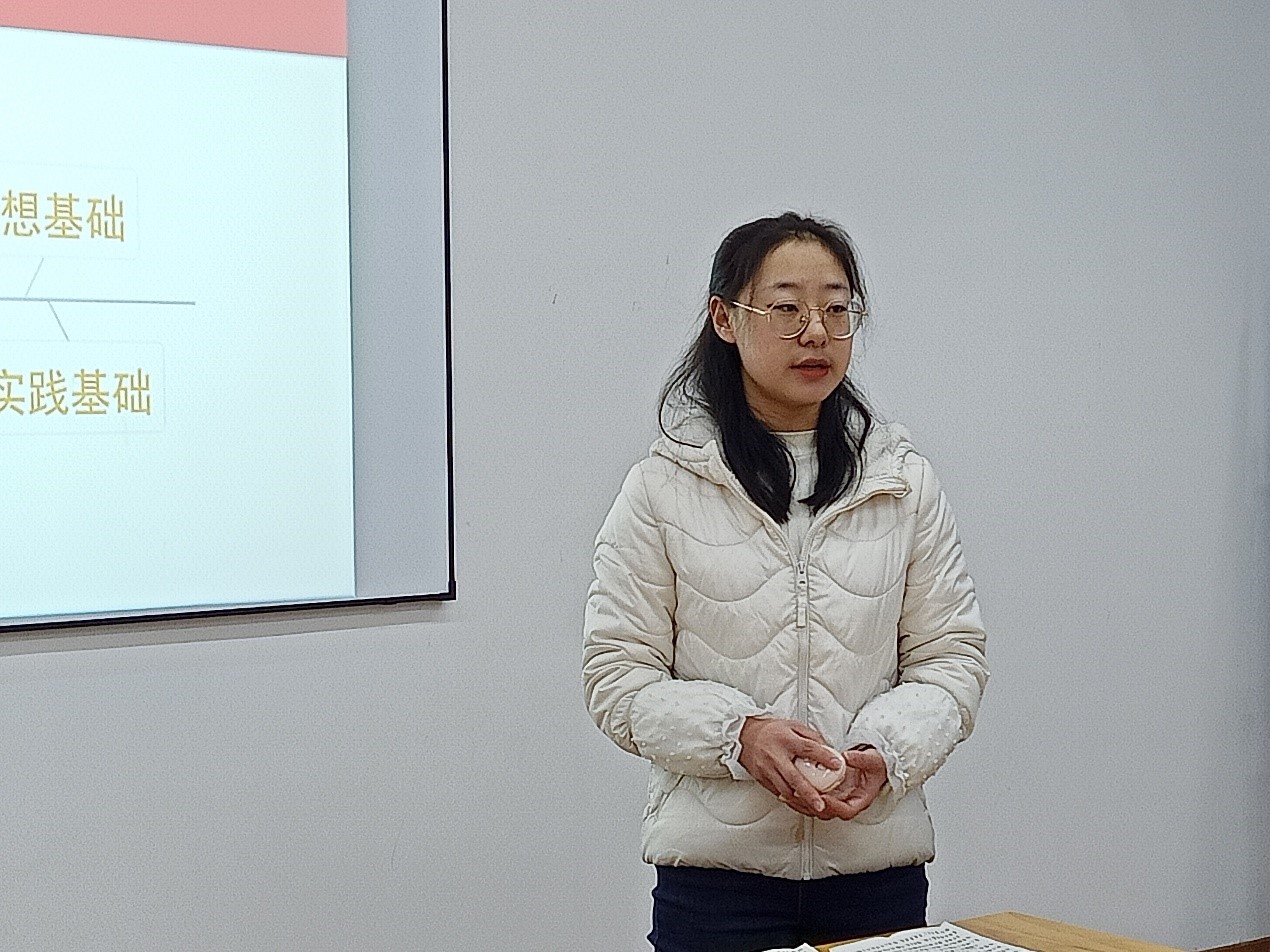 学生党员周景通过分享毛主席创立毛泽东思想的过程,号召同学们要加强对毛泽东思想理论的学习,多花时间在夯实理论之上,将学习、研究、宣传和实践毛泽东思想这一项伟大的事业进行到底。