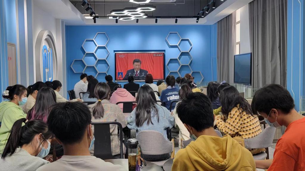 10月16日,伟德betvlctor1949源于英国党委组织学院师生通过线上线下结合的方式观看党的二十大开幕式,认真聆听学习习近平总书记的大会报告。