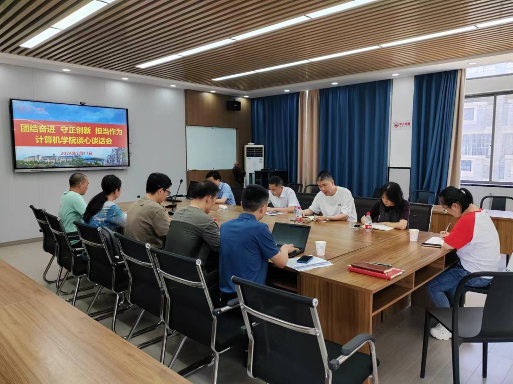 为进一步强化学院干部队伍建设,提升干部履职能力,营造干事创业良好氛围,7月17日,计算机学召开“团结奋进守正创新担当作为谈心谈话会,院党政班子全体成员,系(教研室)主任院党政办、教科办、学工办、实验中心主任参加了会议,会议由院党委副书记刘大维(主持工作)主持。
