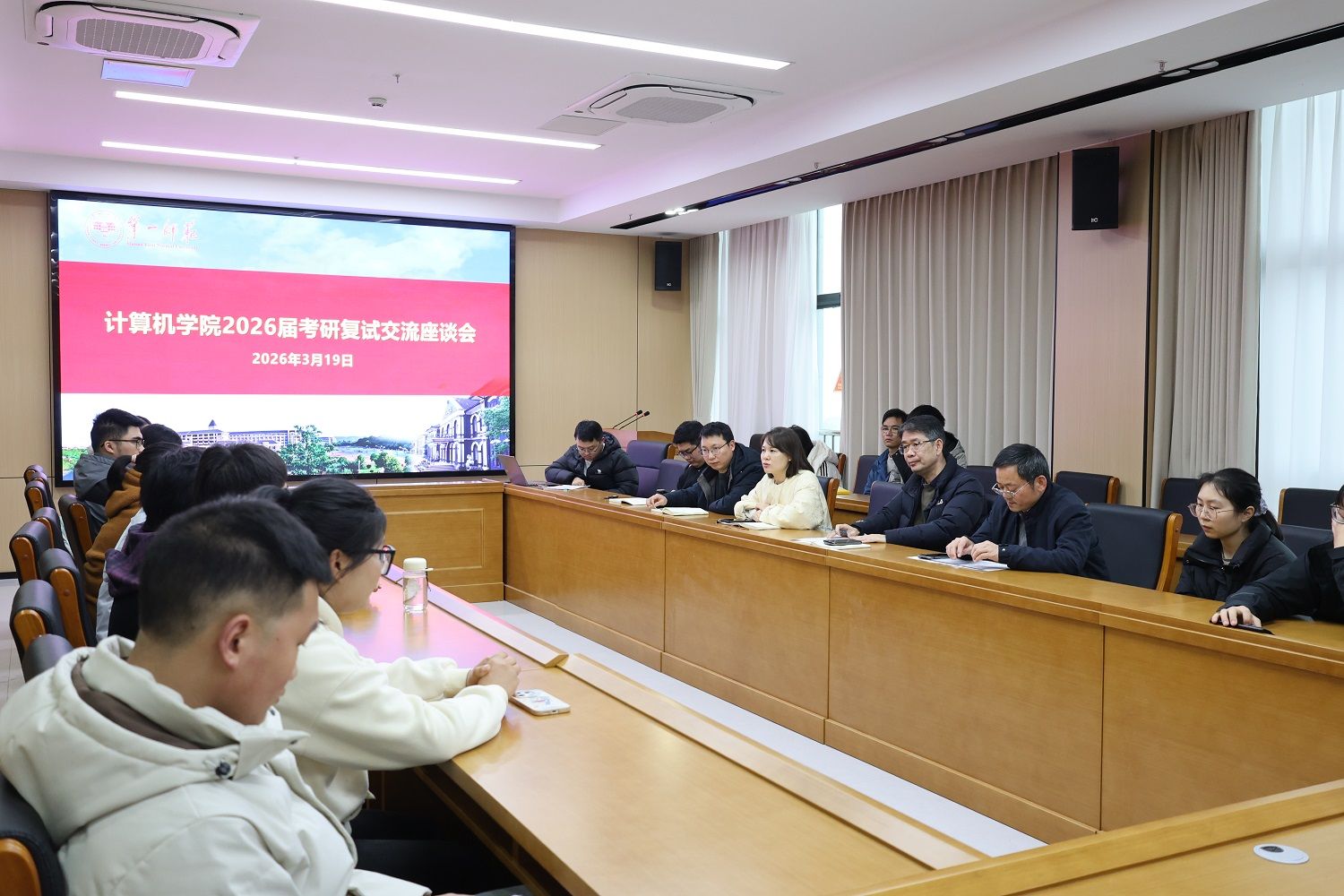 3月19日下午,学院在立园楼712会议室召开2026届考研复试座谈会。学院党政班子全体成员,系主任、专任教师代表、考研班主任、毕业班辅导员及全体参加复试的学生参会。会议由院党委副书记陈奕主持。