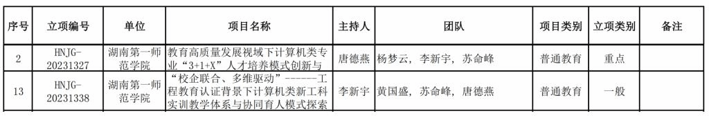 经个人申报、专家评审、学校推荐申报、湖南省教育厅审核,我院获湖南省普通高等学校教学改革研究项目2项,其中重点项目和一般项目各1项。