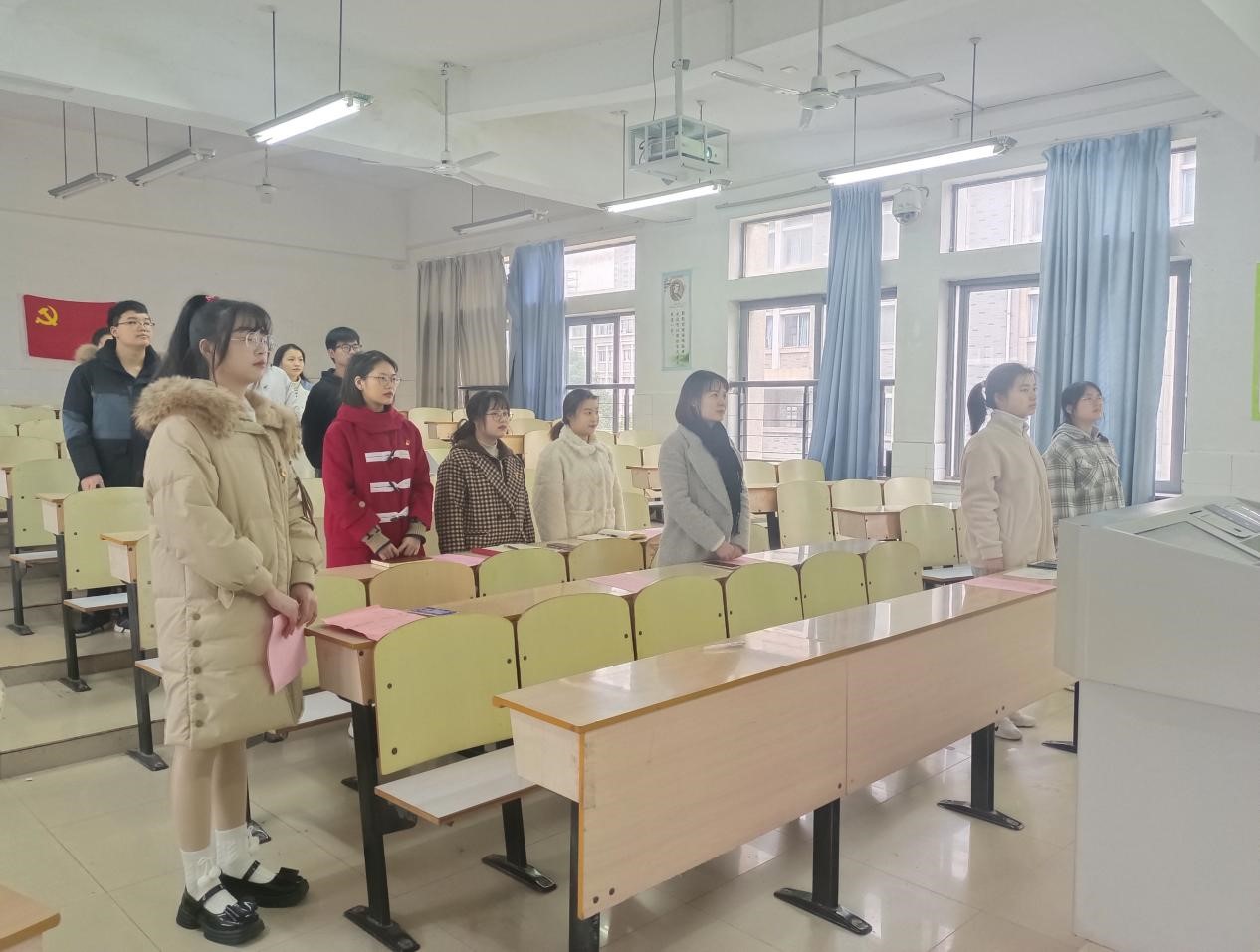 2021年12月14日,我院于玉衡北309、玉衡北310召开发展新党员大会,并于腾讯会议同步进行线上会议。参会人员有学院党委副书记陈奕、党支部书记关红儒以及学生党员、发展对象。会议分别由罗林、苏琴主持。