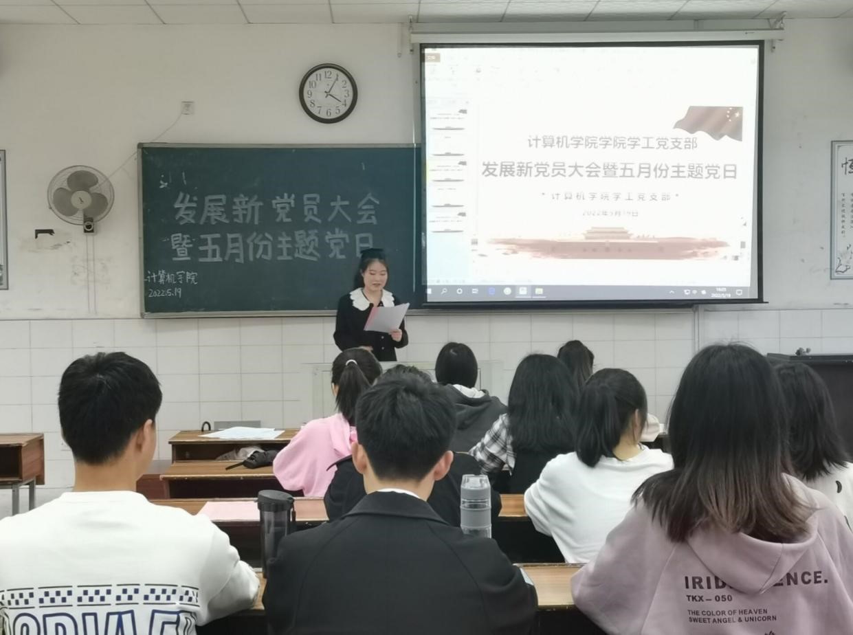 我院于2022年5月19日开展了发展新党员大会暨五月份主题党日活动。与会人员有学院党委书记刘立勇、党委副书记陈奕、学工党支部书记关红儒、学院团委书记叶晶、学工办老师付小霞、全体学生党员以及发展对象。