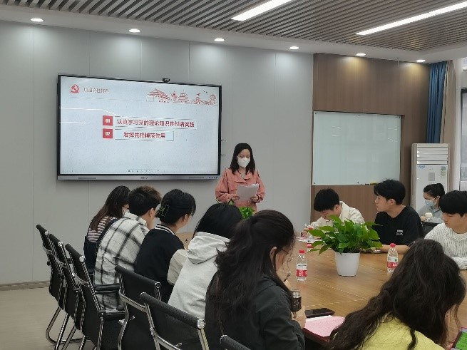 全体奏唱《国际歌》后,组织开展了五月份主题党日活动,学生党员们与发展对象在线上学习视频五四青年励志大课《为时代育新人--青春之歌》。