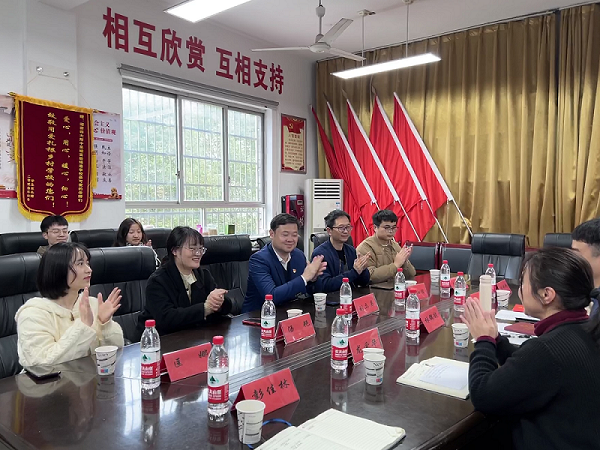 首先,龙爱华致欢迎词,对我院师生代表一行表示热烈的欢迎与诚挚的祝福,对今天高等教育和初等教育的思想碰撞充满期待。我校教育技术学专业13级637班校友、靖港学校党支部书记林锦超进行了主题为“我们的队伍向太阳”的学校党建工作分享报告。报告重点介绍了靖港学校2023年“我的队伍向太阳”七大主体工程(红心工程、清风工程、头雁工程、卓越工程、素养工程、健体工程、幸福工程)的落实情况,向大家呈现了靖港学校党政班子和教职员工近几年来,红心向党的政治品质、专心办学的敬业精神、潜心育人的教育情怀。