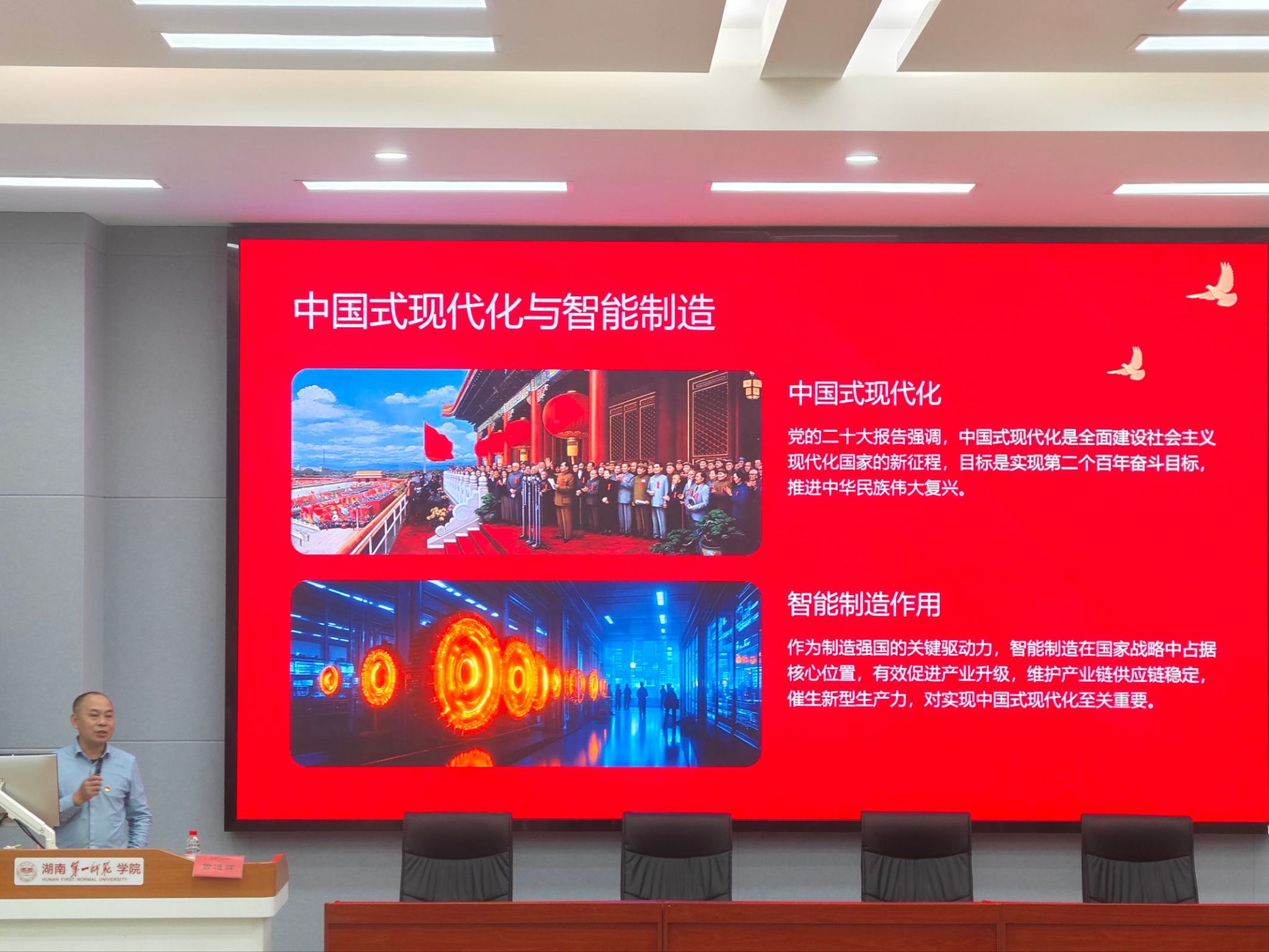 曾进辉从中国式现代化的科学内涵、智能制造学子的时代使命、入党积极分子的实践担当三个维度展开系统阐述。他深入解读了中国式现代化的本质特征与战略部署,结合智能制造领域的发展前景,阐释了科技自立自强的紧迫性与现实路径。他强调,入党积极分子要坚定理想信念、练就过硬本领,将专业学习融入国家发展大局,在实践中锤炼党性修养,以实际行动争取早日加入党组织。