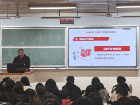 田祖伟首先强调了纪律严明是党的光荣传统和独特优势。他指出新修订的党内法规,是促进全党深刻领悟“两个确立”的决定性意义、坚决做到“两个维护”的必然要求。随后,他引导学员们要准确把握新时代党的建设总要求和全面从严治党战略方针,明确日常言行的衡量标尺,自觉用党规党纪校正思想和行动。最后,他就如何抓好党内法规的贯彻执行,以严明纪律推进党的自我革命提出了明确要求。