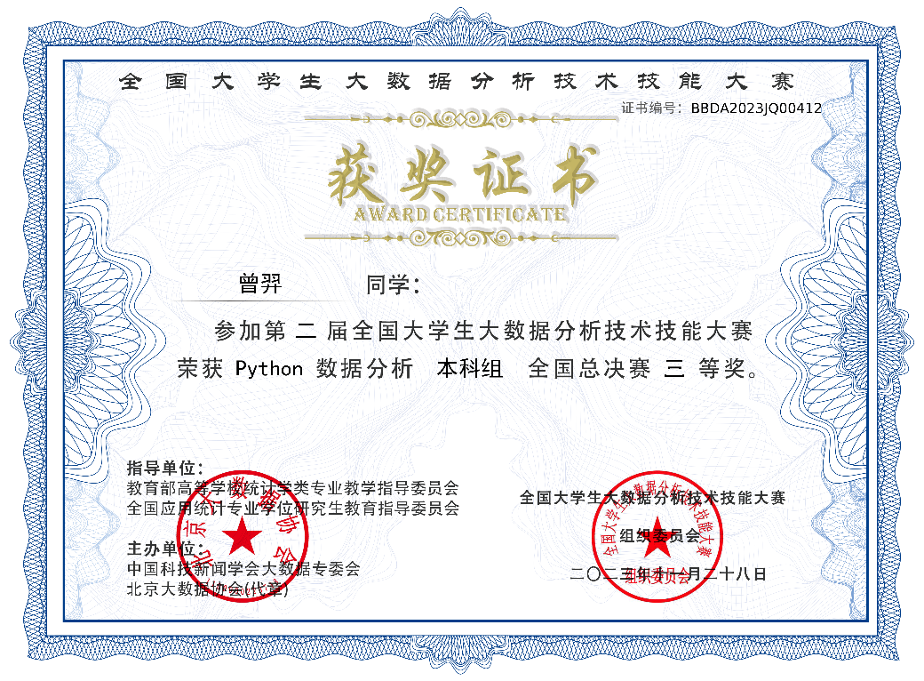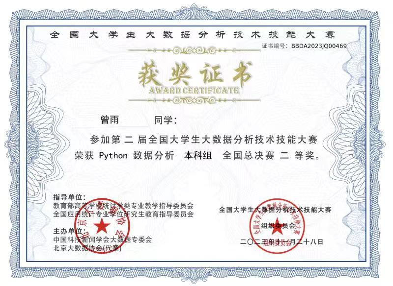近日,第二届全国大学生大数据分析技术技能大赛全国总决赛圆满落幕,我校伟德betvlctor1949源于英国学子在全国总决赛中喜获一、二、三等奖共七项奖项。